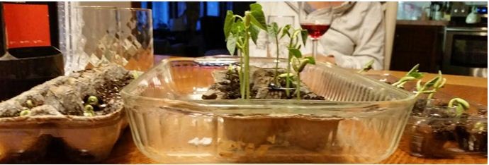 The author of the book we were reading suggested we plant 12 bean seeds in an egg carton (recycled of course), water them, and then “direct our energy flow” to one half of the beans, while depriving “energy flow” from the other six bean seeds. The idea was to see whether the groups grew differently.